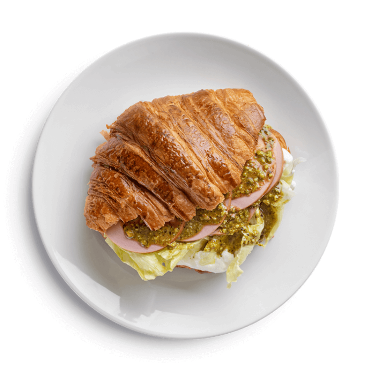 Salmon, croissant, vegetable oil, egg yolk, table vinegar, sugar, salt, lemon juice, cream cheese, feta cheese, parsley, dill, tomatoes, iceberg lettuce